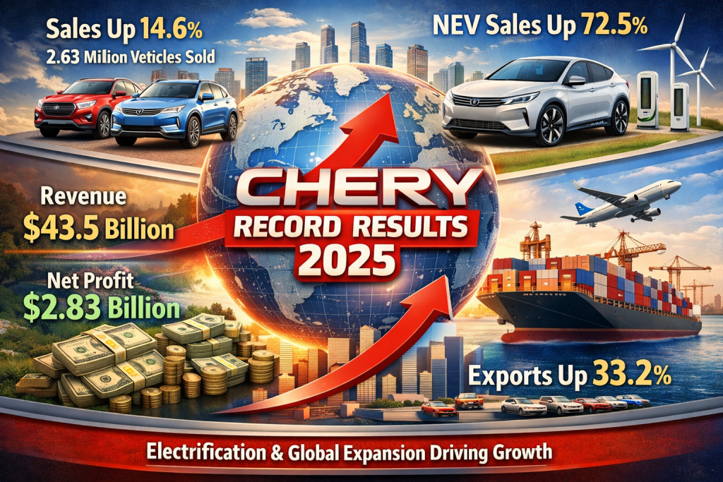 Chery posts record 2025 results as EV surge and global push fuel growth