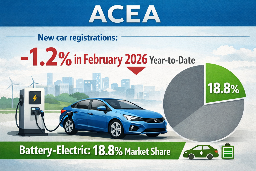 European new car sales returned to growth in February, supported by continued strength in battery-electric, plug-in hybrid and hybrid vehicles, which now account for roughly two-thirds of the market. Tesla posted its first monthly increase since December 2024, but BYD still slightly outsold it as electrified competition in Europe continued to intensify.